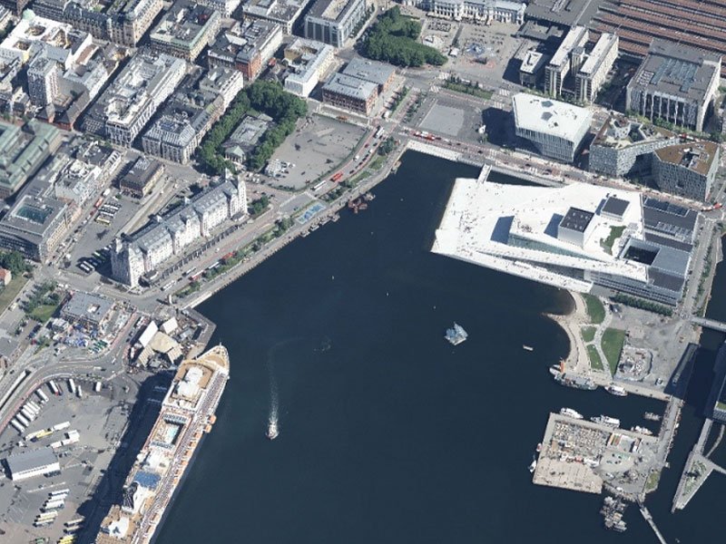 Oblique imagery is aerial photography that is collected at an angle. Our customers use oblique imagery for wide-ranging purposes including access to photorealistic 3D models of cities, façade photos, terrain models based on image matching and detailed mapping of infrastructure.